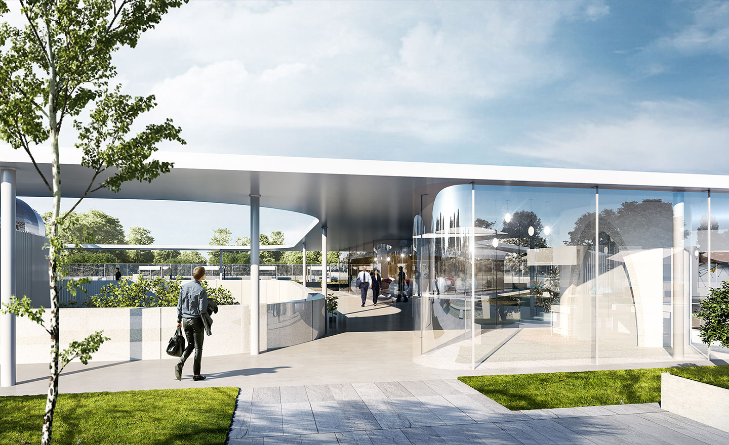 建筑設計方面:造型設計以天使的光環(huán)——活力核 + 天使之翼為理念。活力核代表著企業(yè)愿景——成為守護人類健康的核心力量,天使之翼寓意著企業(yè)的使命——科技的力量為各地區(qū)的醫(yī)生和患者打造優(yōu)等質量和舒適體驗的醫(yī)療產品,提升設備使用效果和價值,賦能醫(yī)者,助力醫(yī)者共創(chuàng)良好診療效果。加入了屋頂綠化和垂直綠化,每一處綠化都像一個微型自循環(huán)生態(tài)系統(tǒng),每一層疊加如同創(chuàng)建一座“立體森林”,為使用人員提供愉悅身心的空中花園。