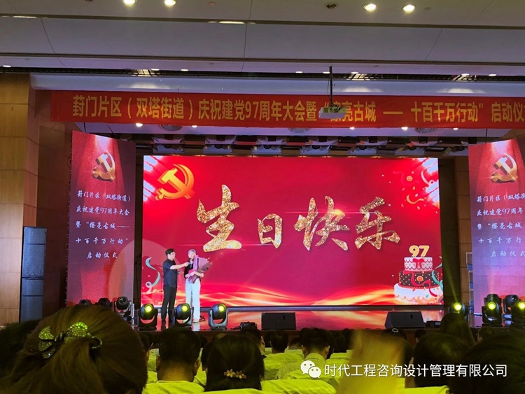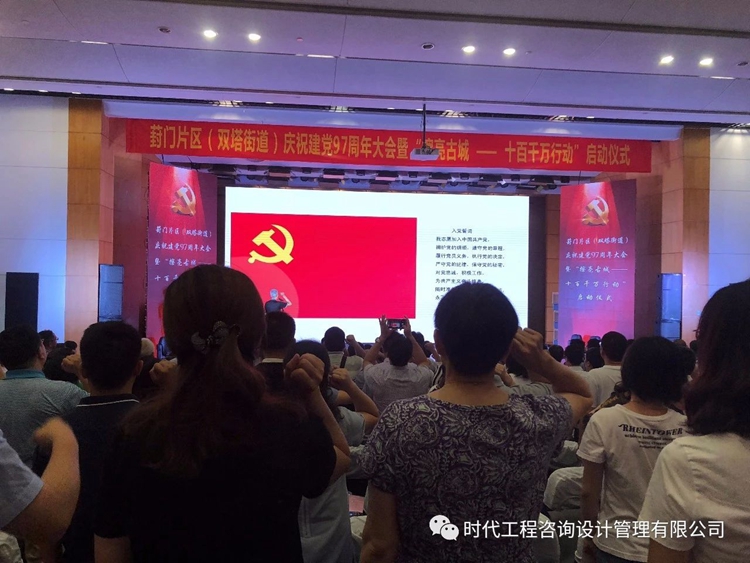 2018年6月30日上午9:30,葑門片區(雙塔街道)舉行慶祝建黨97周年大會暨“擦亮古城——十百千萬行動”啟動儀式。公司黨支部唐蘇滇、朱洪兩位黨員與轄區兩百余位黨員,近百家黨建共建單位代表齊聚一堂,慶祝黨的生日,重溫入黨誓詞,共同經歷了一次思想洗禮。