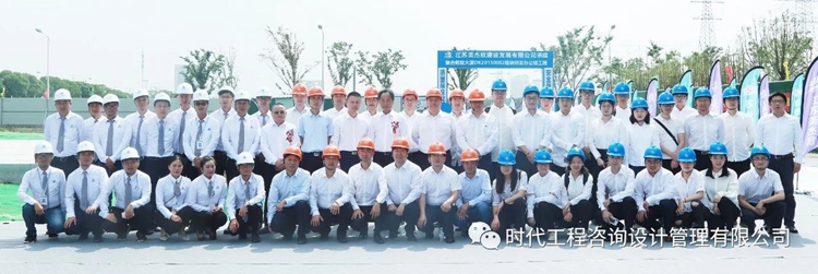蘇州市時代工程咨詢設計管理有限公司是本項目的EPC工程總承包方,董事長、總經理唐蘇滇作為嘉賓特邀出席。常務副總經理、項目管理分公司總經理劉眾帶領時代EPC事業部團隊;副總經理、設計院院長單達帶領時代設計團隊,以及土建總包單位江蘇美杰欣團隊,組成觀禮方陣參加。