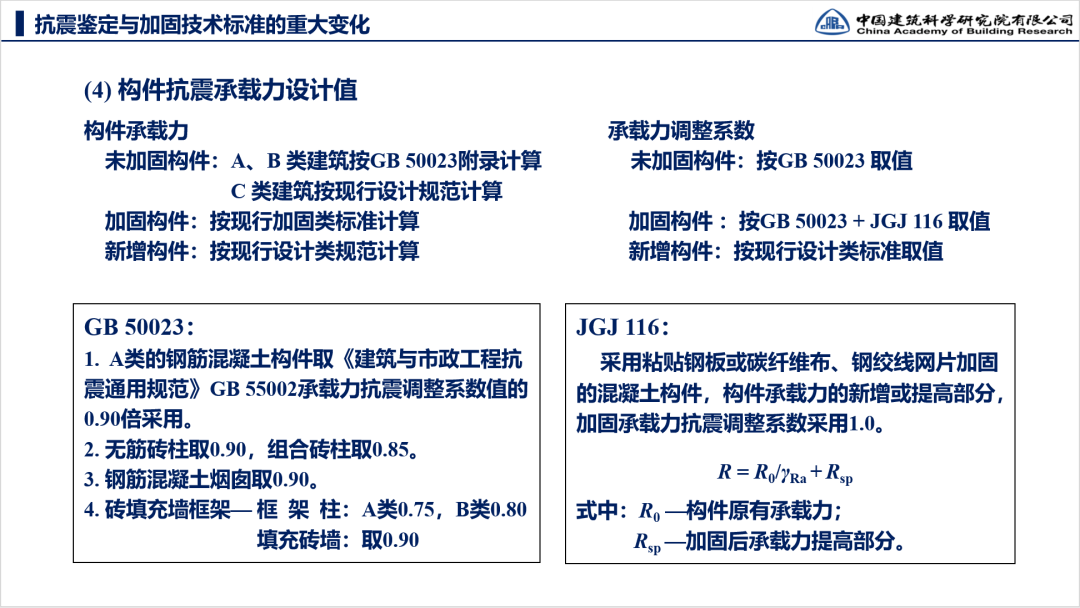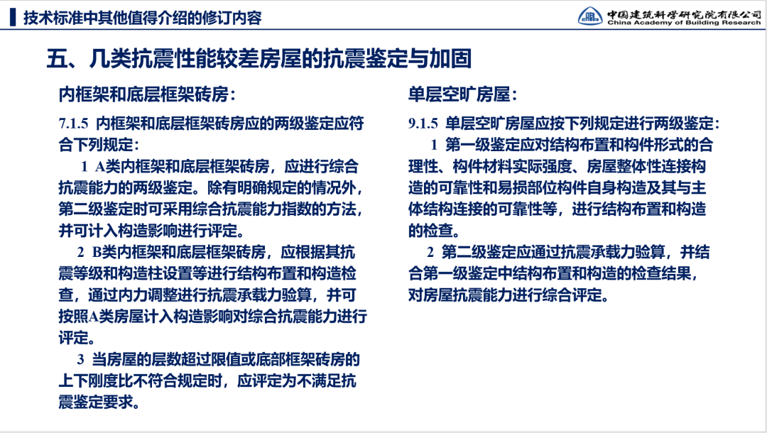 (3)抗震鑒定與加固技術(shù)標(biāo)準(zhǔn)的重大變化