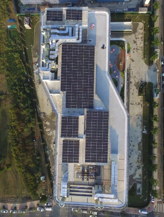 本項目屋面設置分布式光伏系統,采用“自發自用、余電上網”模式,在能源管理系統(EMS)協調控制下,光伏發電對建筑白天用電負荷形成有效源側替代,降低了對市政電網的依賴,兼具環境效益與長期經濟性。